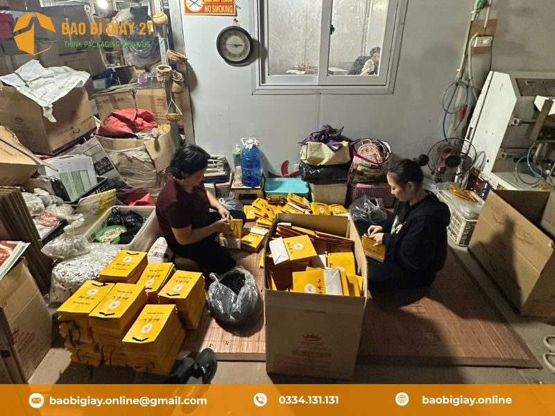 Thời gian sản xuất thông thường dao động từ 3 – 7 ngày làm việc, tùy theo số lượng, loại giấy và mức độ phức tạp của thiết kế. Với đơn hàng gấp, Bao Bì 2T có thể hỗ trợ rút ngắn thời gian in nhanh theo yêu cầu.